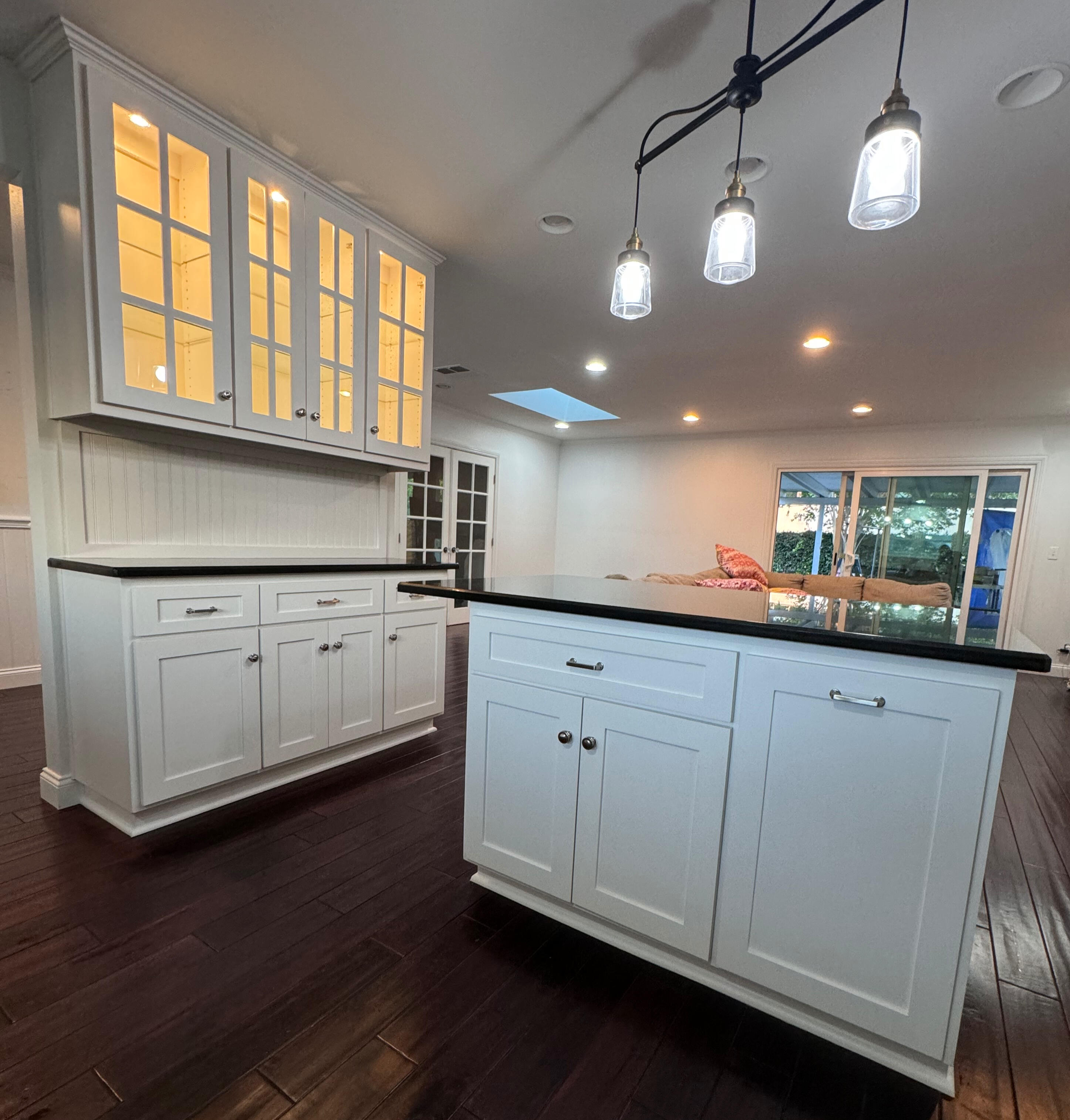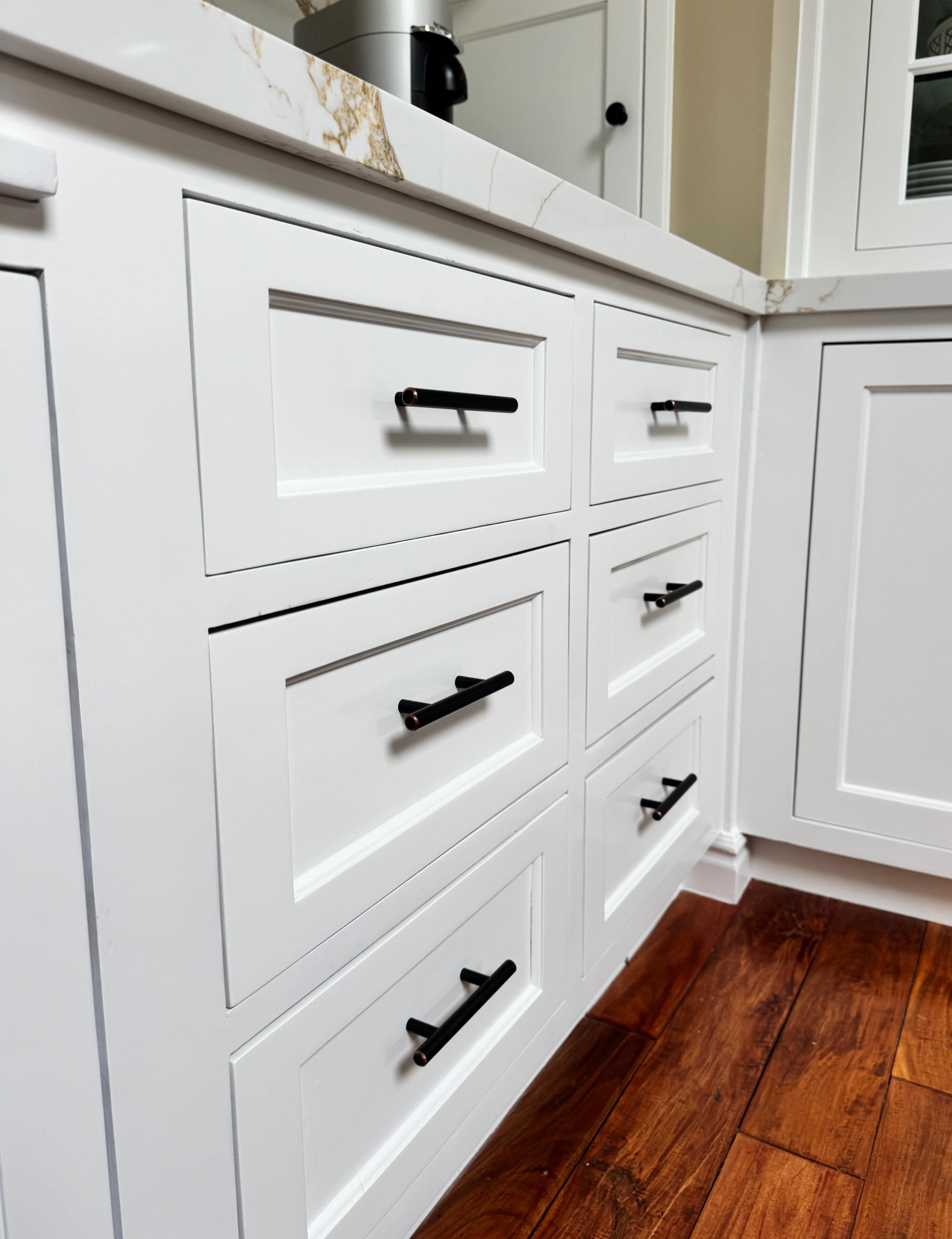We refinish and repaint kitchen cabinets with a focus on clean lines, durable coatings, and a factory-smooth finish.